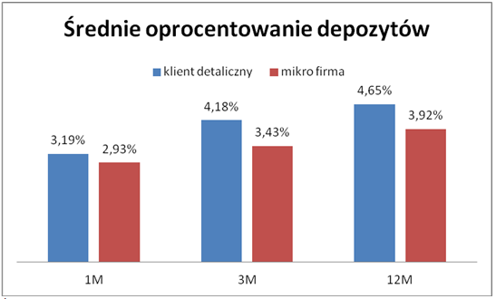 Wynika to stąd, że gospodarstwa domowe częściej wybierają lokaty o dłuższych terminach, które generalnie są wyżej oprocentowane, a firmy – lokaty najbardziej płynne, których oprocentowanie jest zdecydowanie niższe.