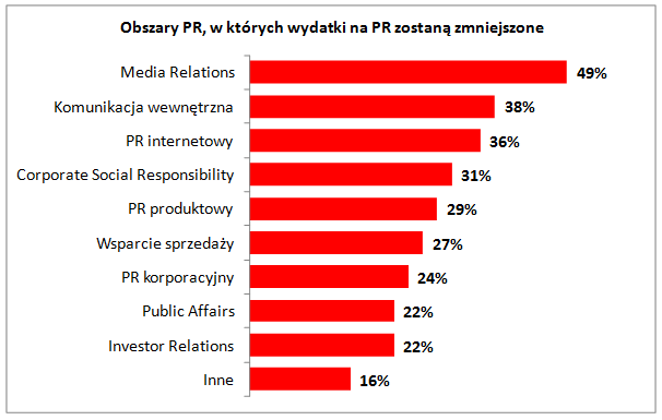 Natomiast cięcia w budżecie na działania PR głównie odbiją się na narzędziach media relations, komunikacja wewnętrzna, czy PR produktowy.