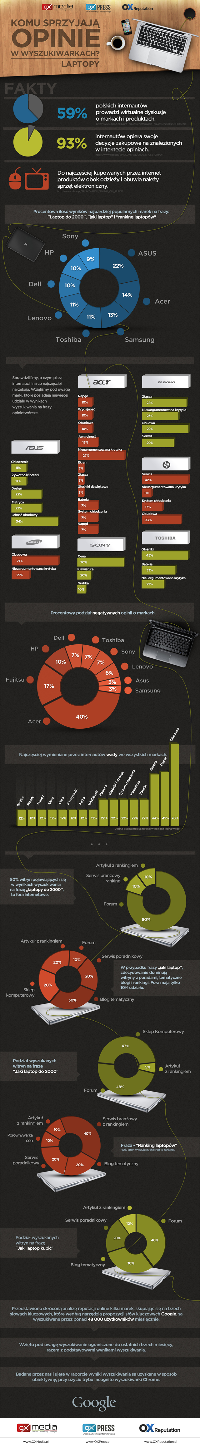 Co więcej, do najczęściej kupowanych przez internet produktów obok odzieży i obuwia należy sprzęt elektroniczny. Agencja OX Media przygotowała infografikę oceniającą reputację największych marek laptopów w Google.