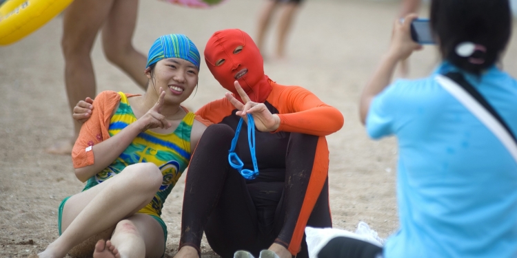 Tego lata na plażach w chińskim mieście Qingdao zagościła nowa moda. Plażowicze ukrywają przed słońcem całe ciało, w tym również twarz. Służy do tego specjalny strój kąpielowy.