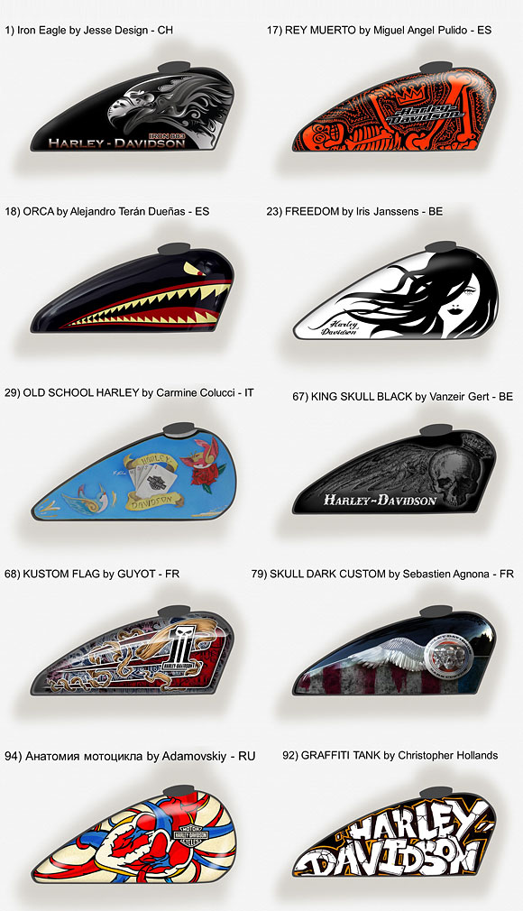 Każdy z początkujących artystów pobrał szablon słynnego zbiornika paliwa i opracował własną interpretację ducha Harley-Davidson, tak jak to przez ponad sto lat czynili styliści firmy.
