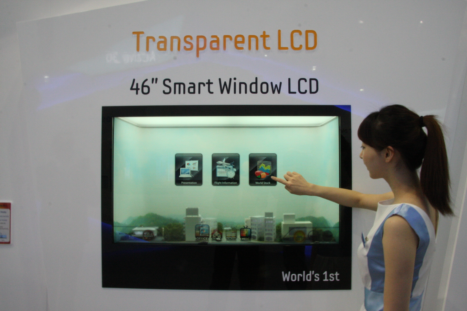 46-calowy, przezroczysty panel LCD firmy Samsung oferuje współczynnik kontrastu na poziomie 4500:1. Korzystając ze światła słonecznego lub oświetlenia wewnątrz pomieszczenia, panel nie wymaga dodatkowego podświetlania.