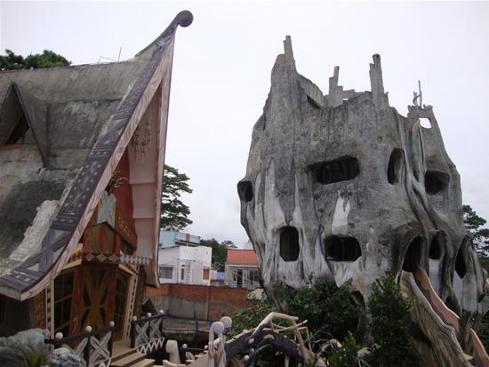 Choć cały zbudowany jest z konwencjonalnych materiałów, hotel Hang Nga’s Tree House kształtem przypomina drzewo. Budynek znany jest także jako „szalony dom”.