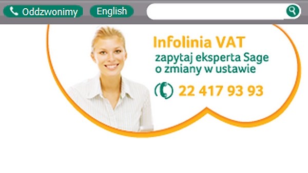 Infolinia VAT zorganizowana przez Sage, producenta i dostawcę oprogramowania wspomagającego zarządzanie dla sektora MSP w Polsce, jest dostępna w dni robocze (pn – pt), w godz. 8.30 – 16.30.