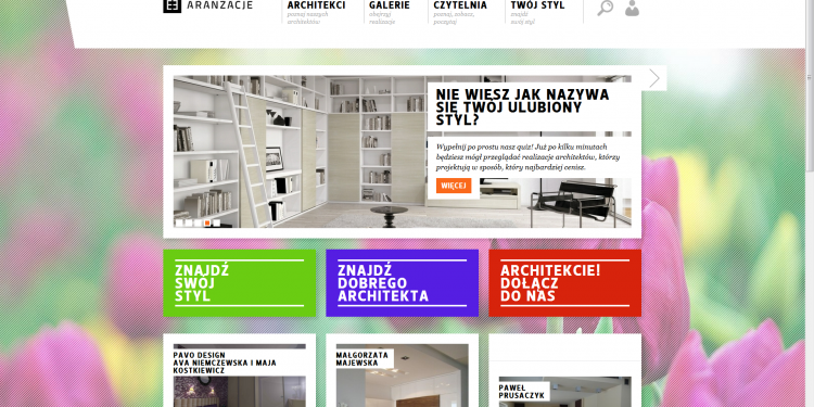 Struktura serwisu jest przejrzysta. Dwa działy główne – Architekci i Galeria, pozwalają na przeszukanie portalu według podstawowych kryteriów. Architekta wyszukujemy poprzez jego specjalizację, style i województwo. W Galerii znajdują się wszystkie zdjęcia, które można sortować również według specjalizacji architekta i jego preferowanych stylów.